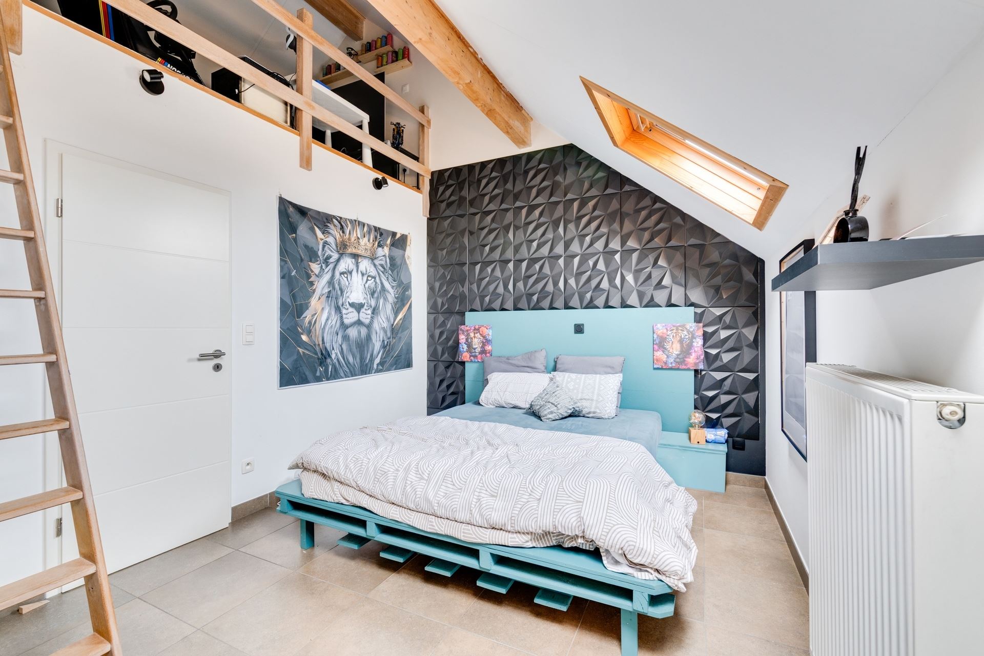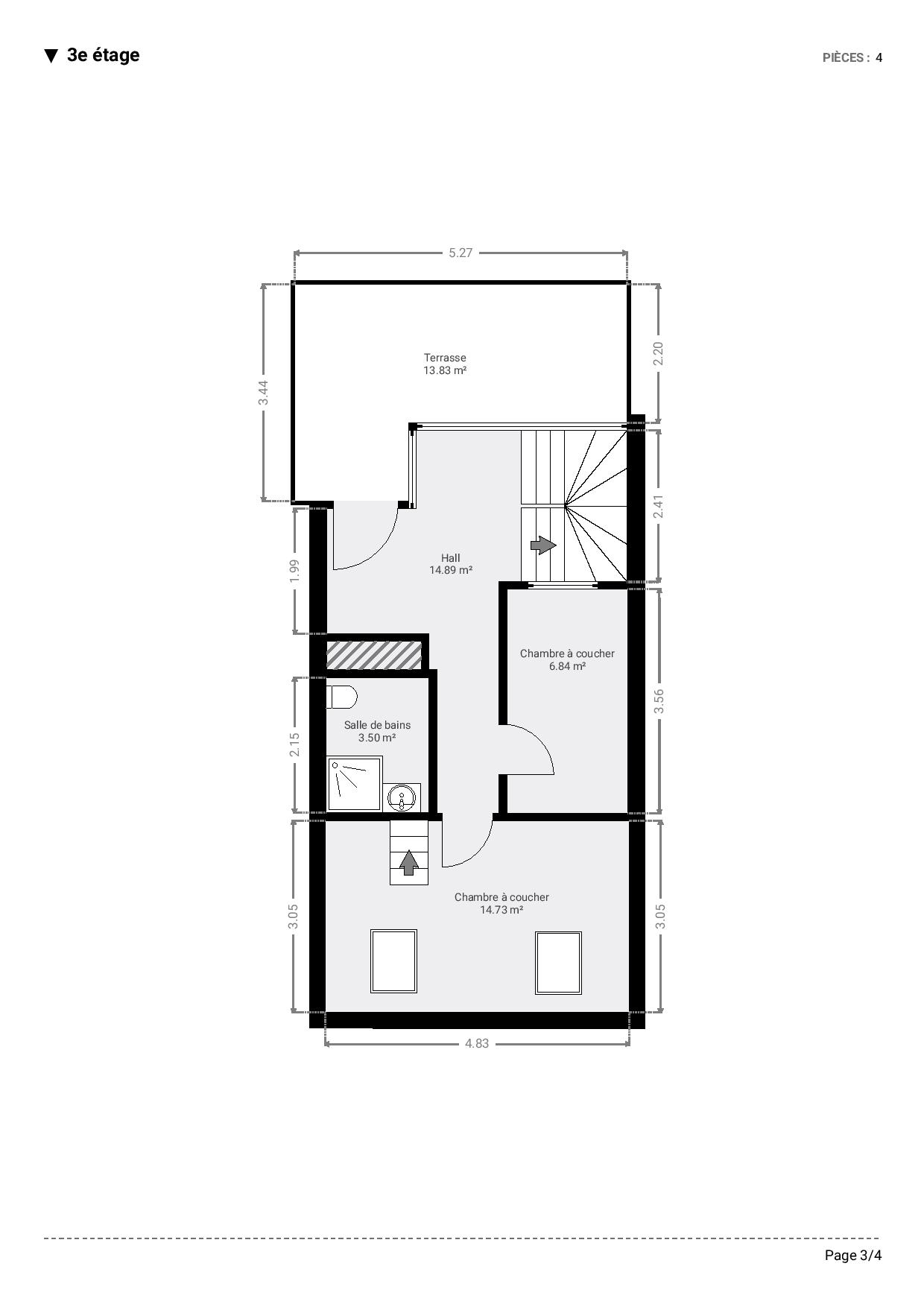 Au 3e étage, le hall de nuit dessert deux chambres, dont une avec mezzanine, une salle de douche ainsi qu’une seconde terrasse.