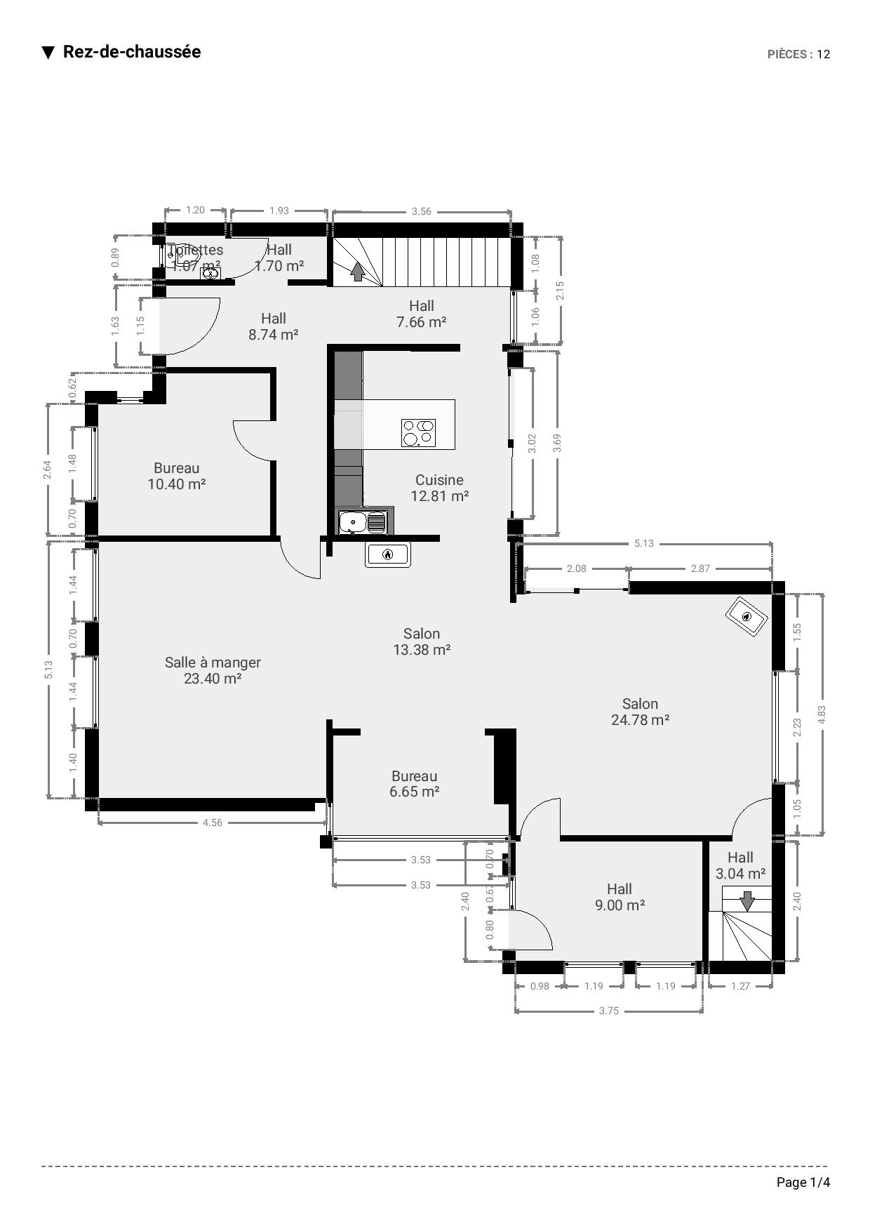Édifiée sur plusieurs niveaux, cette belle propriété se compose, au rez-de-chaussée, d’un hall d’entrée, d’un bureau, d’un vaste séjour réunissant salon et salle à manger avec coin bureau, d’une cuisine entièrement équipée ainsi que d’un WC séparé.