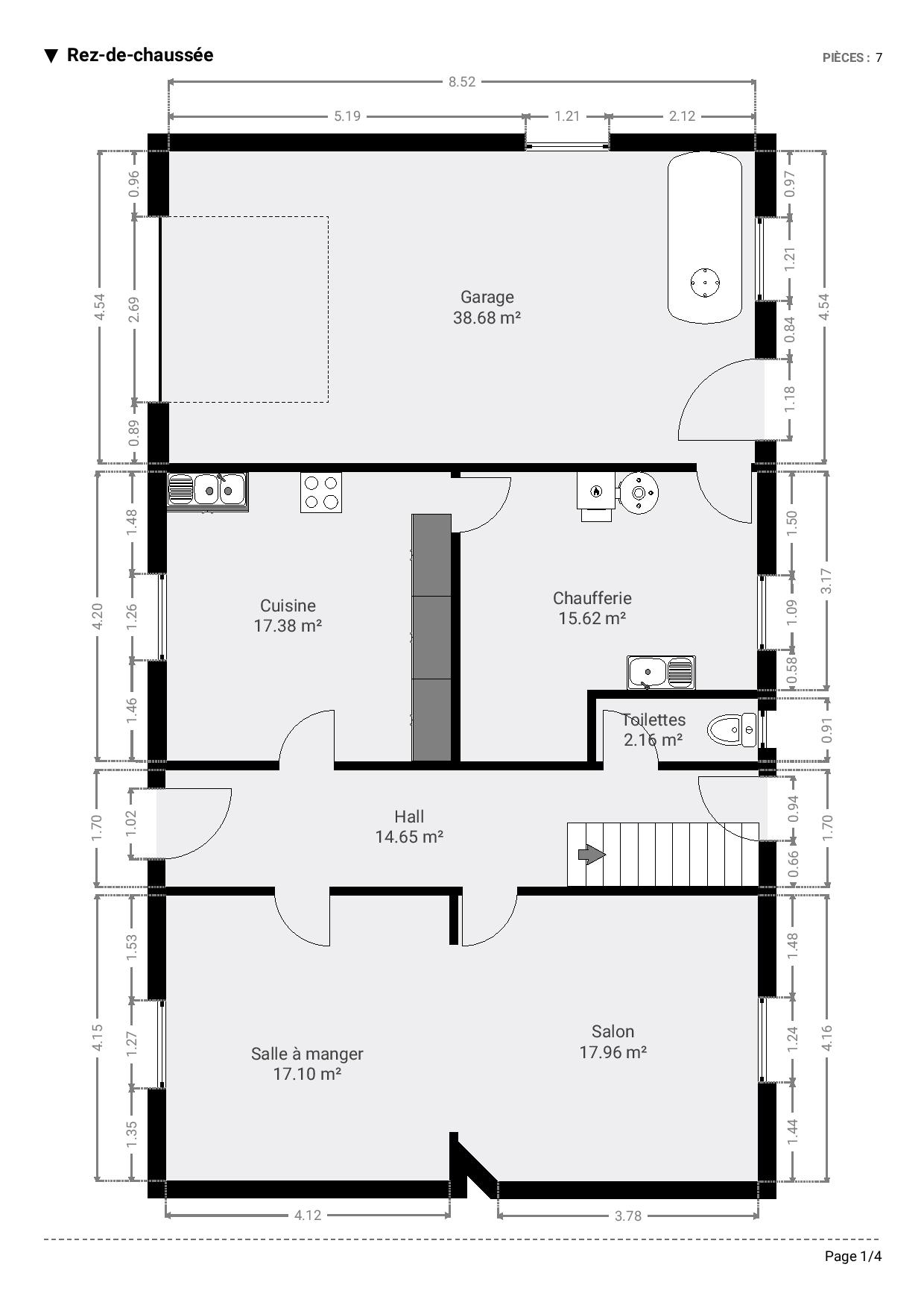 Le rez-de-chaussée se compose d’un vaste séjour lumineux, d’une cuisine, d’une chaufferie avec buanderie, d’un WC séparé et d’un grand garage.