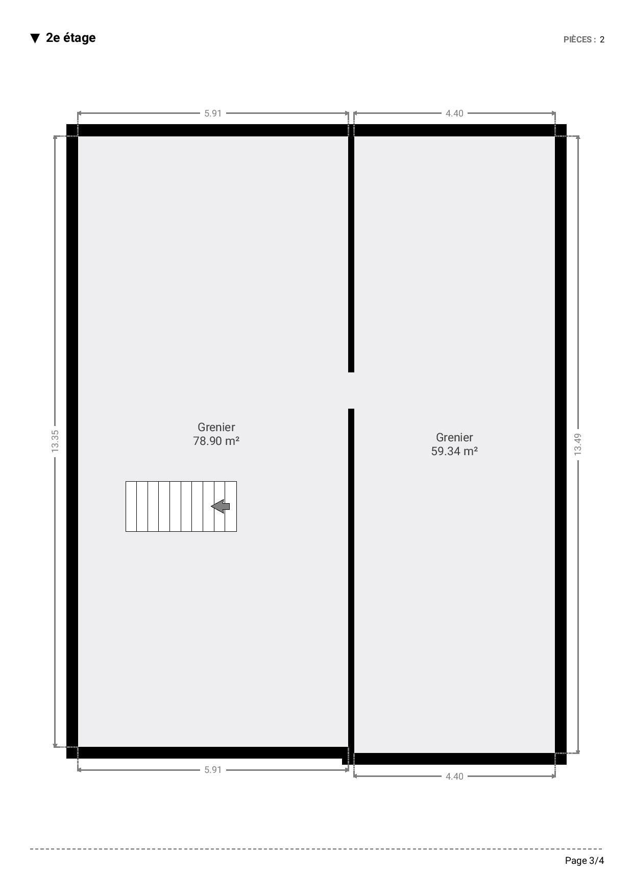 👉 Deuxième étage : vaste grenier de 138 m², accessible par escalier et reposant sur une dalle en béton, offrant un grand potentiel d’aménagement.