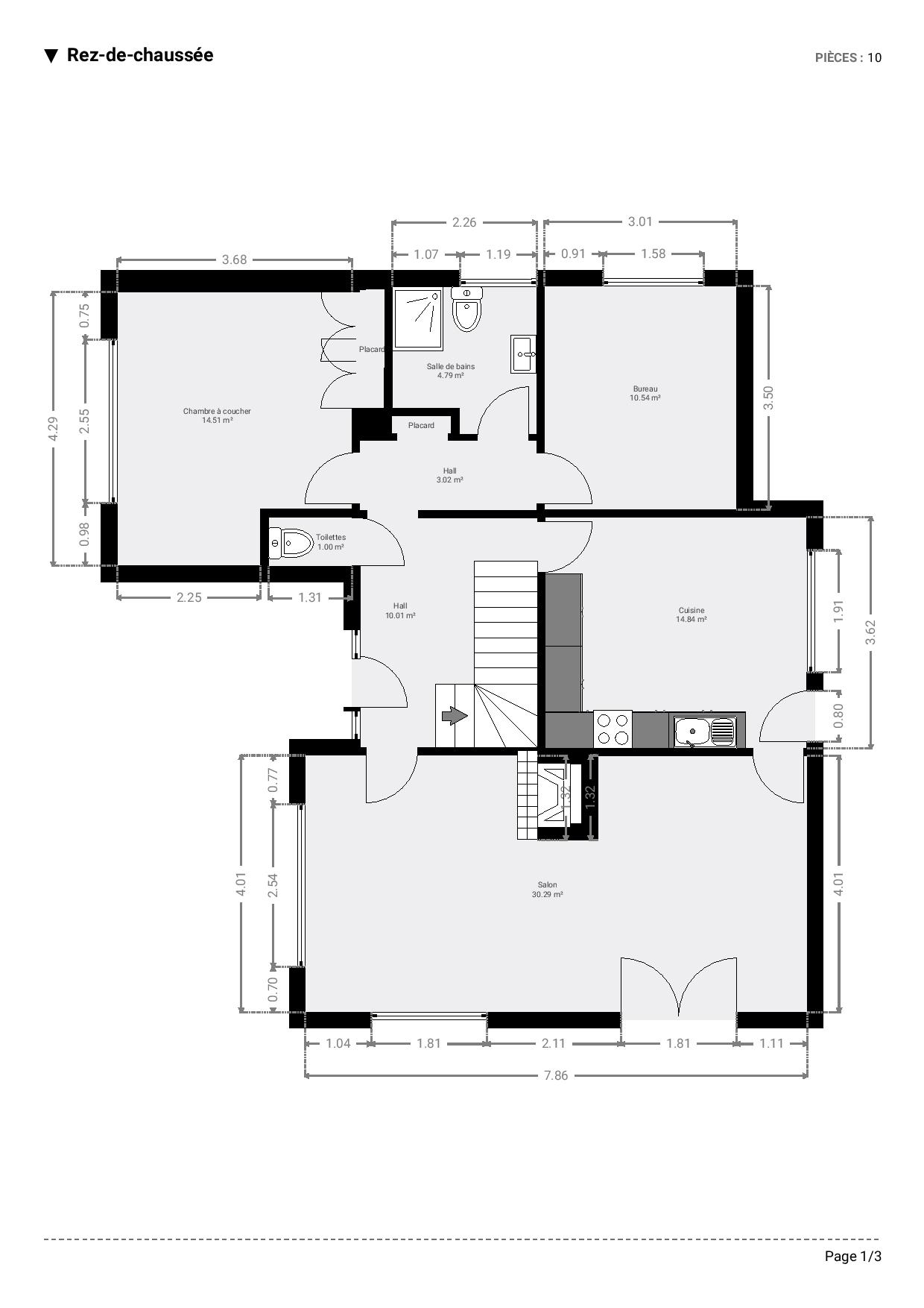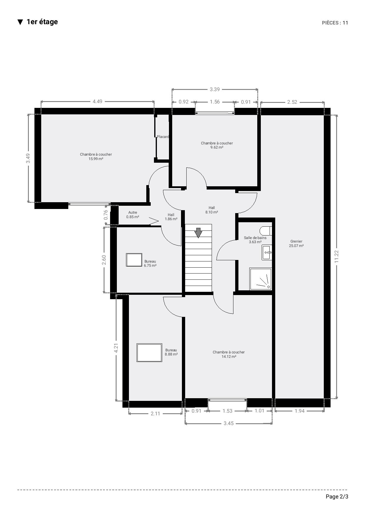 - À l’étage : hall de nuit, trois chambres 🛏️, bureau, salle de bains et grenier.